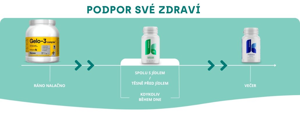 V balíku na zatížené klouby naleznete 3 účinné produkty, jejichž účinky se vzájemně ovlivňují a podporují. Efektivní kombinace produktů vhodná při problémech s pohybovým aparátem. Balíček tvoří náš bestseller, kloubní výživu Gelo-3 Complex®, 100% glukosamin sulfát v produktu Fit Artro Active a přírodní minerál MSM, který příznivě ovlivňuje zdraví kloubů.
