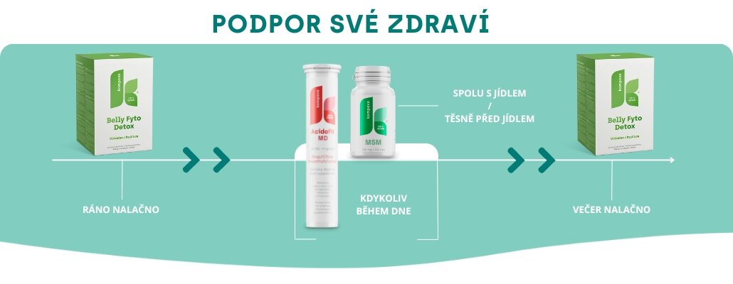 Detox balíček obsahuje 3 přírodní produkty, jejichž kombinace efektivně očistí váš organismus a vy se tak cítili vitálněji. V balíčku najdete bestseller Belly Fyto Detox – přírodní vlákninu, která pomáhá ze střev odstraňovat veškeré nánosy a usazeniny. Tím se zlepší nejen vaše trávení, ale i celkový chod organismu. Dalším produktem v balíčku je MSM, přírodní síra, která se vyznačuje silnými detoxikačními účinky. Acidofit obsahuje směs vitamínů, minerálů a přírodních extraktů, které pomáhají při problémech s překyselením organismu a odstraňují z těla volné radikály.